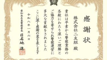 ニュース 愛知県名東警察署より感謝状を頂きました