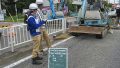 既設人孔残置工事。作業員数:職員2名、作業員8名、ガードマン5名