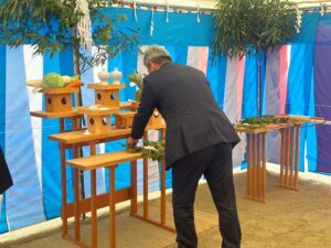 「豊田スチールセンター株式会社田原工場 新事務棟建設工事」の地鎮祭を執り行いました 建築事業部 2025.06.062026.01.21 2025年6月 豊田スチールセンター株式会社様 田原工場新事務棟建設工事に伴う地鎮祭行事を執り行いました。 工事施工に関しましては安心安全を徹底し、お引き渡しが完了するまで気を引き締めてまいる所存であります。